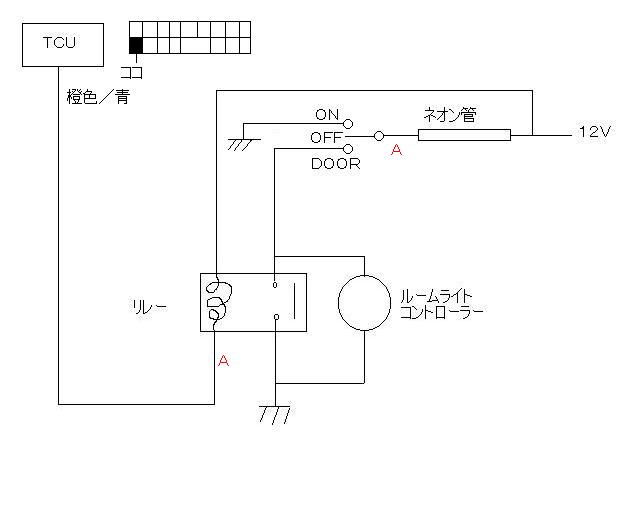 先日、ebiさんが質問されてた、ルームライト連動の配線図です。