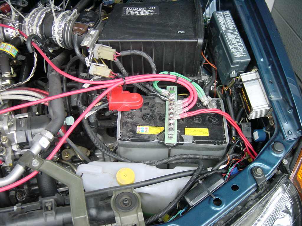 バッテリー右横に写ってるのがフォグランプ用のHLCです。