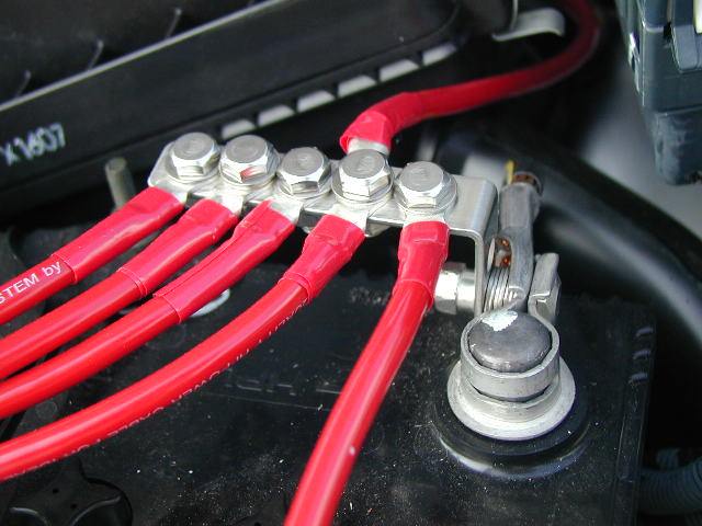バッテリーの端子は交換していません。スペーサーを入れてカー用品ショップにあるL型ステンレスステイを使いました。
