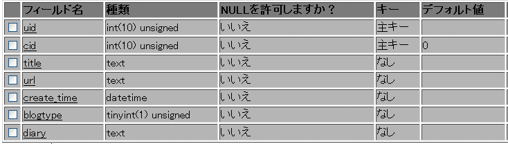 もし異なる場合は、phpmyadminなどで一旦テーブルをダンプ(バックアップ)し、その中身(create table部分)を正しく書き換えてから、テーブル削除後に書き戻す、という厄介な手順が必要です。