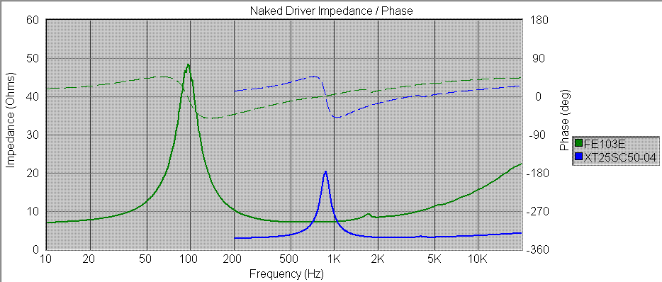 を使って、ユニットの裸のインピーダンスを測定し、SWにインポートしました。