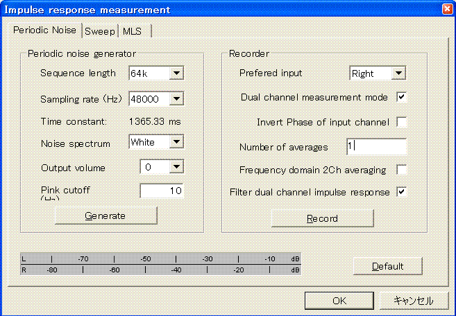 右図「Impulse Response Setting」 の「Dual channel measurement mode」 にチェックを入れないと、ダメだったのです。