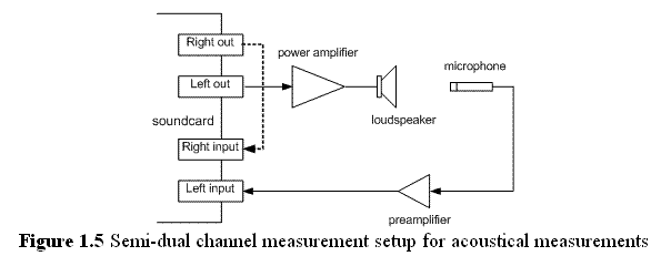 また、マニュアルによると、私の測定環境は Lchをsoundデバイスからループバックする「Semi-Dual Channnel」 測定 というものに該当し、 右図のようになっています。(但し、L/Rは逆です。 SpWsにあわせたので・・)