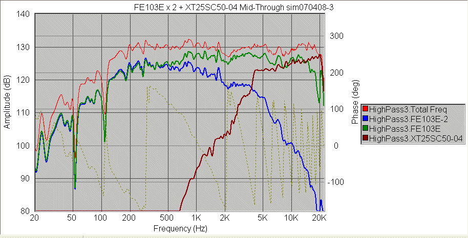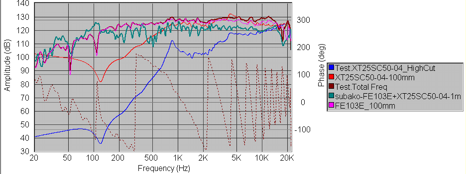 この手の軽量コーンのフルレンジほど、コイルを通した時の劣化感があります。  折角、生きの良いフルレンジをMidに使うのですから、ここだけは何とかしてスルーで使いたい。 そういう思いでいろいろいじってました。 で、割とまともな特性が。