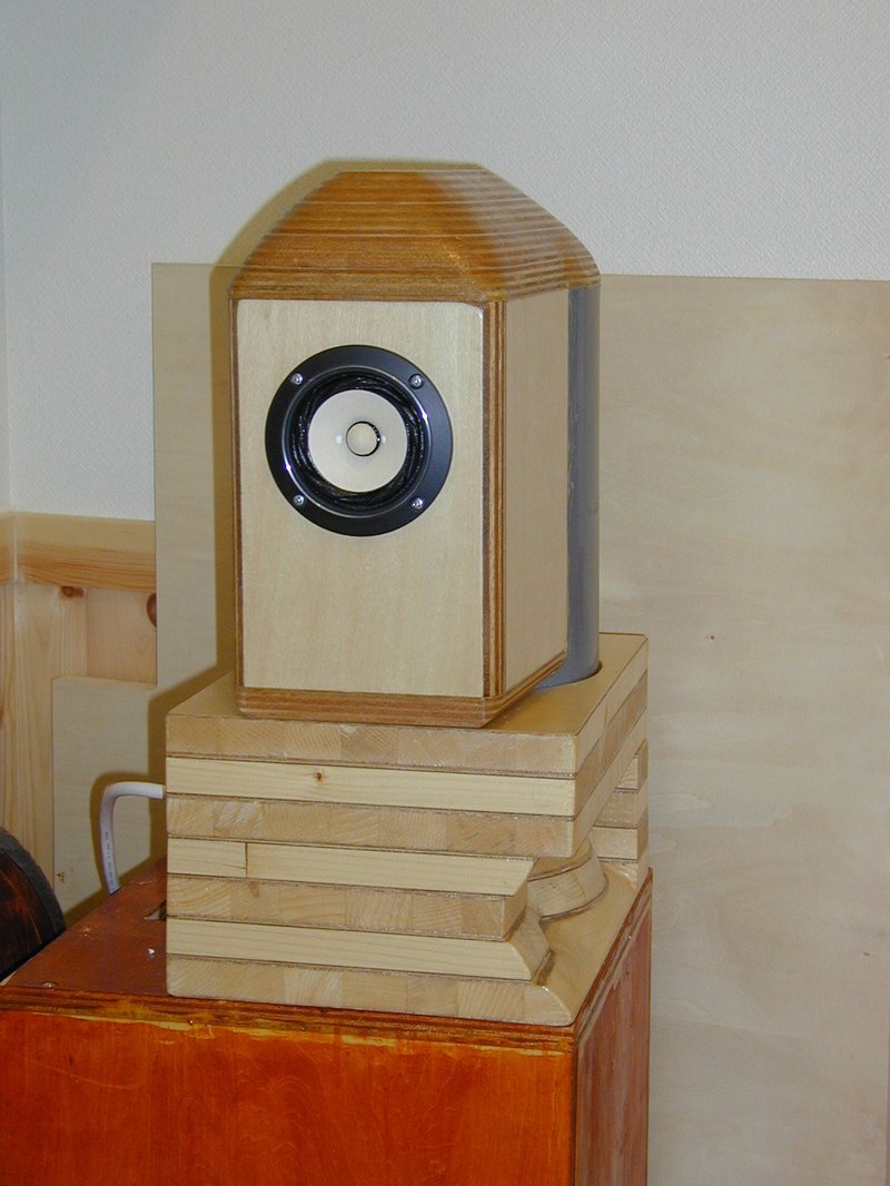 過去の3作で予察を行いながら、ご本家オリジナルとは少々異なるアプローチで設計しています。それは、軽量コーン低Qのユ ニットでもよりBHに近い低域で量感を確保しながら、最低域をバスレフ動作で40Hzまで伸延する2モードを明確に区分けした「ヒラベッタ型3D-スパイ ラルホーン」としたことです。