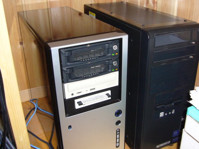 ついでに、リムーバブルHDDケースを、予備サーバーから抜いて移植。 色が黒に変わりました。(この際だから、黒のCD-Rも移植しておけばよかったか。。)
