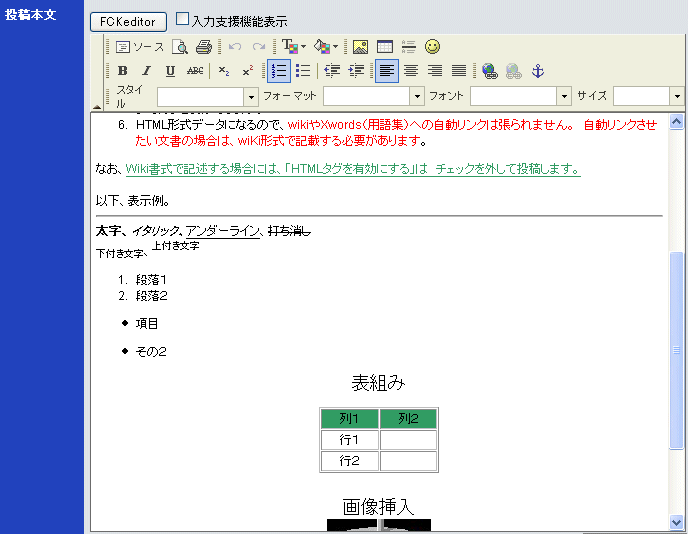 - wikiレンダリング/FCKeditor(wysiwygHTMLエディタ)の切り替え環境