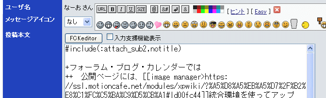 - xoopsサイトに、wikiレンダリング/FCKeditor(wysiwygHTMLエディタ)の切り替え環境を作ってみました。