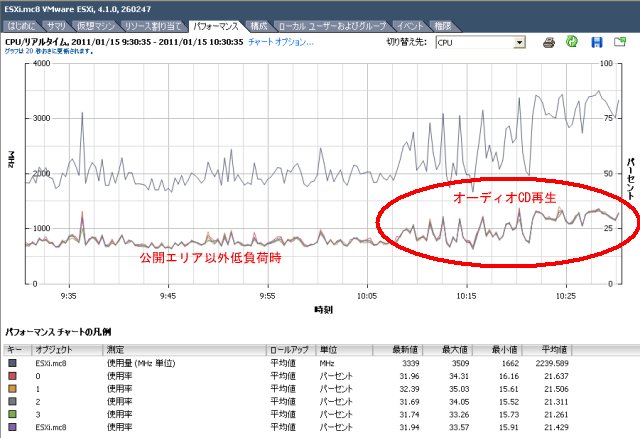 公開サーバーはとても軽くなったし、CDをかけても、余裕余裕。 UPS管理ソフト上では、BBルーター2台やハブなどを含めても150~160W程度で回っている。 性能内容:エコ比率で言ったらかなりなものかと自画自賛。