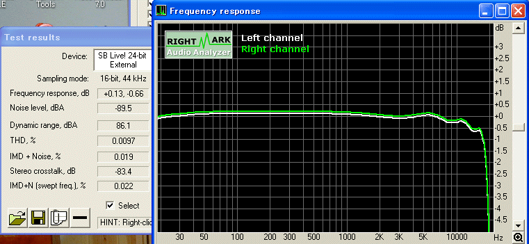早速、ループケーブルで LineOut→LineIn の特性をRMAAで測定しました。