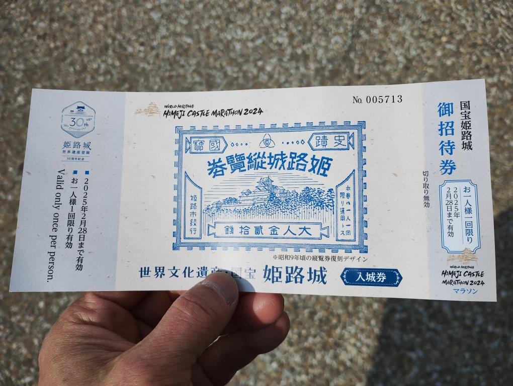 イベント会場を一周して見物しているとS氏がほどなく受付を終了し到着。はじめまして! 女性陣とは明日の集合時間を確認しお別れし、私はS氏とイベント会場でエナジージェルなど買い物をしたあと、ランナー特典で配られた無料拝観券で姫路城の天守へ。
