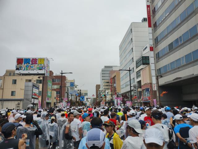Tさん、Oさんと着替えて荷物を預けスタート地点へ向かいましたが、私はなぜか途中ではぐれてしまいます。でも整列近くのトイレでバッタリ会えました。この時間のこのトイレは列も短く正解でした。