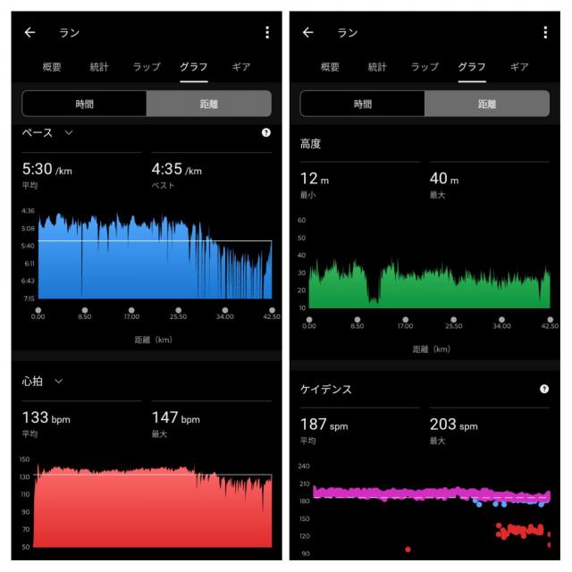 その後は、淡々とペースを刻むように心掛けました。リラックスして、エアポジで下ろした脚の反動で股関節を引き上げる、接地時に骨盤を地面の流れに任せて旋回する、腕の前振りにも意識を向ける。。時々これらの意識をして走りました。