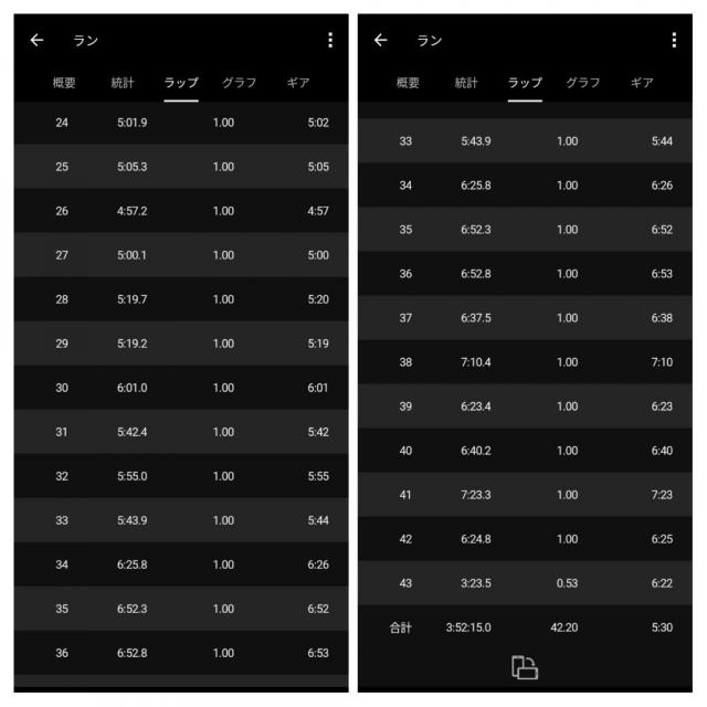 その後もズルズルとスピードが落ちてゆき、いつものトコトコ歩くような走法でも、キロ6分も難しくなってゆきます。