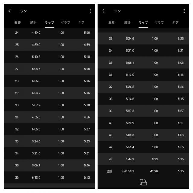 ですので、重い体を前に進めるにはたぶん限界ペースだったと思います。 せめて+1kgで収まっていれば、サブ3.5ペースで行けたかもしれません。