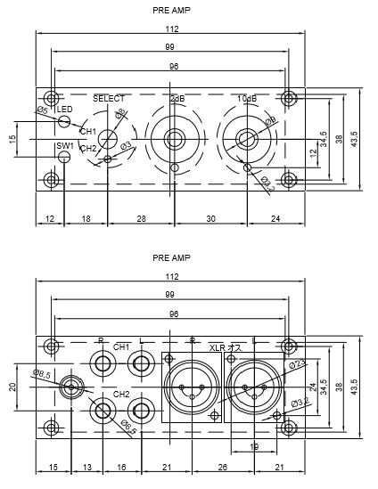 製作中の不平衡/平衡ラインプリアンプと、Ucd32MPパワーアンプのケース設計を実行中。