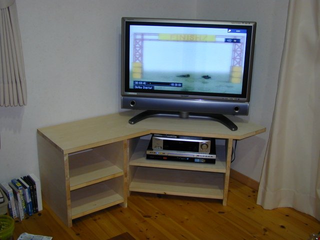 ここで時間切れ。 試しにリビングに持って行って、 HDレコーダー・ビデオと液晶テレビをセットしてみました。