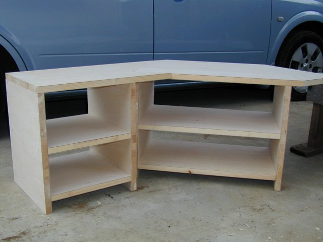 組み立てには、板厚の倍の長さのD4mm x L50mmの木ねじと、木工用ボンドを使用。 面倒なので木ねじの頭にダボなどは省略。 あとで気が向いたらツキ板をカットして張ろうかな。