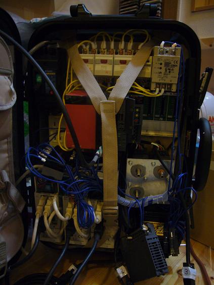 弊社の「必殺ハンドキャリー3軸シミュレーター」 (左図、汚くてすみません・・) を宅配 手配し(・・爆)、26日に現場に戻ってからは仮モーターをぐりぐり廻しーの、ソフト作成・事前シミュレーションで熟成しておきます。