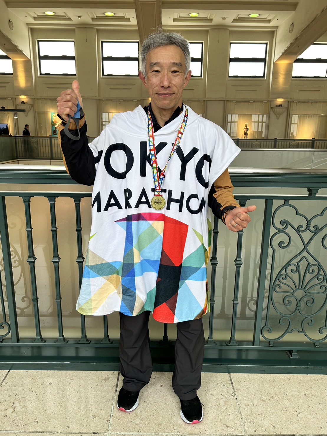 ここで大人気ランチューバー、三津家(みつか)さん(応援ネーム:みつやさん?)が偶然にも動画撮影を終了しファンサービス中。最近すっかり大ファンになっている私めも、いつもの「やってみよう~」ポーズで一枚撮っていただきました。 4週連続のフルマラソンで公認コース自己ベストの2時間30切りを目指すようです。すごい!頑張ってください!!(私もね・・)