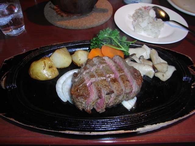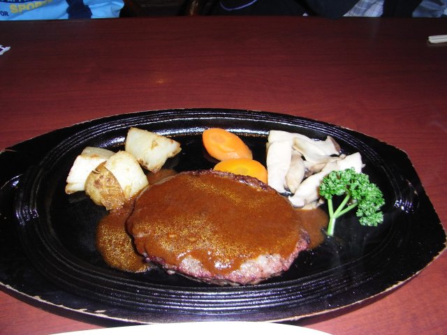 私と家内は、それぞれオージーフィレステーキと、黒毛和牛ハンバーグをいただきました。 子供たちは普通のハンバーグ。