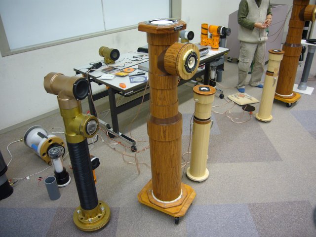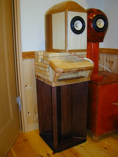 今までのtakenakaさんの作品のいくつかを、お宅にお邪魔させていただき聞いたものは、低音がほぼ「バスレフ」の延長上の印象でしたが、今回のは 「バックロードホーン」に近いと思いました。 よく弾んで中高域ともマッチして楽しく聞けました。 今後は「角型スパイラル」の方をメインに取り組んでゆ くとのことです。