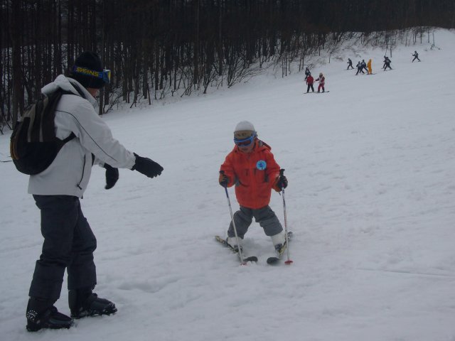 加えて夕方、私が2本ほど一人で中級コースを楽しみましたが、 その後を追って、少々だらしなかった長男が、一人で練習斜面をエッチラ登って頑張って練習してました。 いつも口ばっかりだと思っていた長男ですが、少し見直しました。