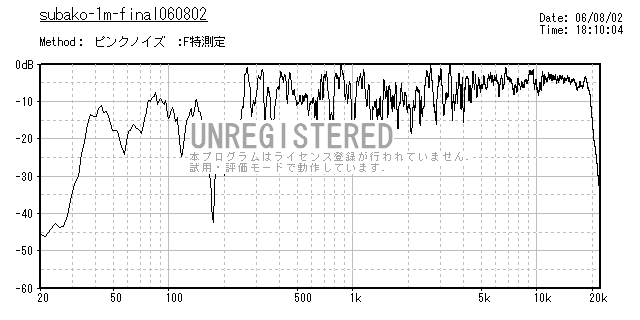 毎度の、MySpeaker測定グラフです。(いつものようにUNREGISTEREDですが、個人で使用する分には問題ないとのことですので・・)