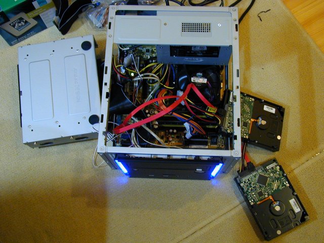 先日の記事 [Audio] Lilith+ASIOで行こう! [備忘録] coLinux か VMWarePlayerか で新Musicサーバー兼DVDエンコードPCに向けての予察をしていましたが、 今しかできそうに無いので平日休みをとってアキバで部品を仕入れて製作しました。  昨年春に会社のサーバー用を安価に組んだ以来で、最新の情報を仕入れて比較するだけで大変でした。