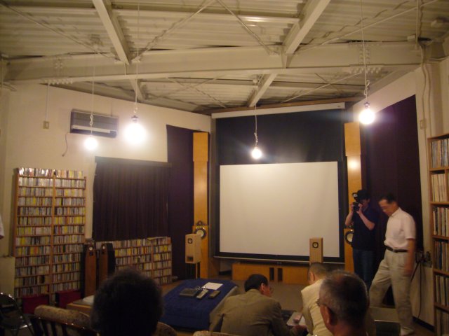 画像は開始前にハセヒロSPでウオーミングアップ中の様子。照明は裸電球、エアコンも壁付け2台、天井はなく屋根材のガルバニウム鋼板の裏打ちのみの簡素な風貌ですが、音に大きく関わる部分はしっかり作られ、私にとっては素晴らしい音響ルームに思えました。