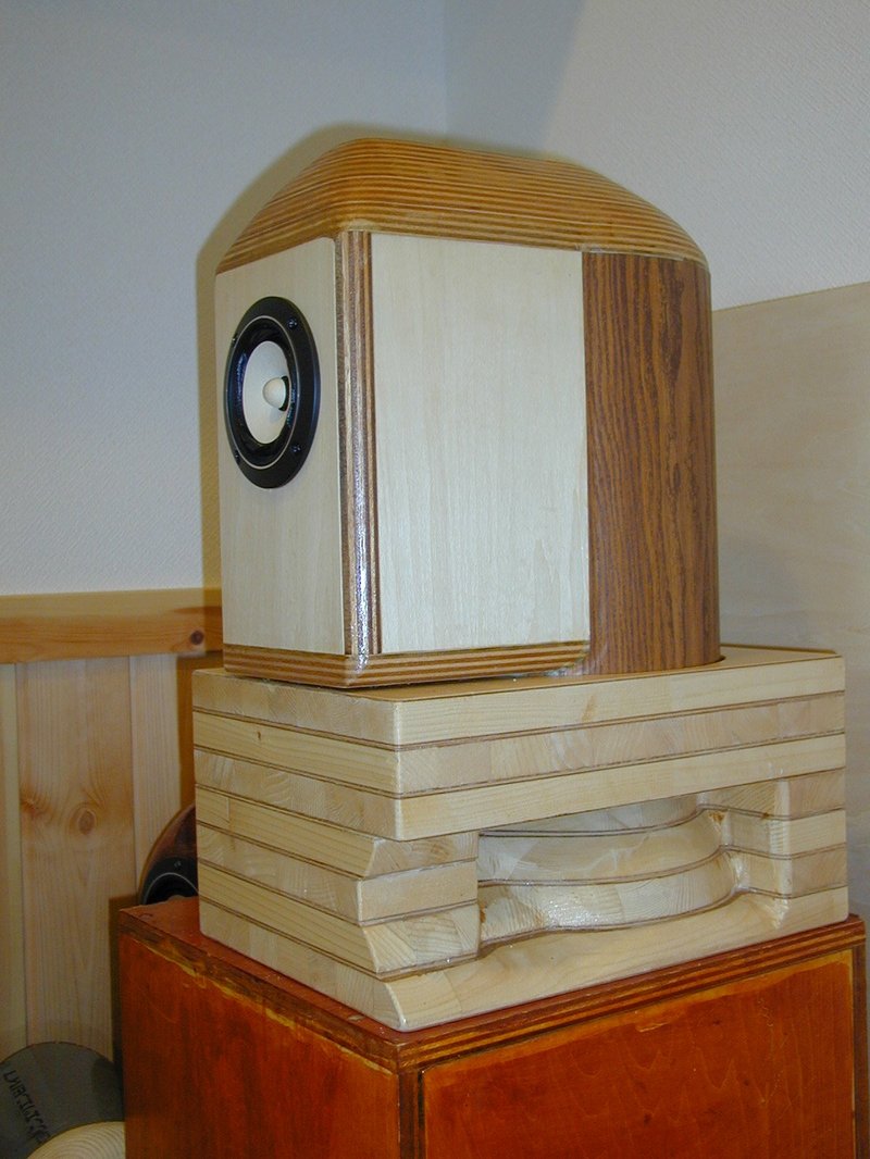 私の作品を特に評価してくださった、六本木工学研究所代表の大原嘉礼氏には感謝します。 低音をバックロー ドというよりはバスレフに近い音です、と評されたのは、まさにそのとおりと思います。 これでも、バスレフよりは立ち上がりを出るように設計・チューニン グした結果でして、3D-スパイラルの低域の特徴と思います。