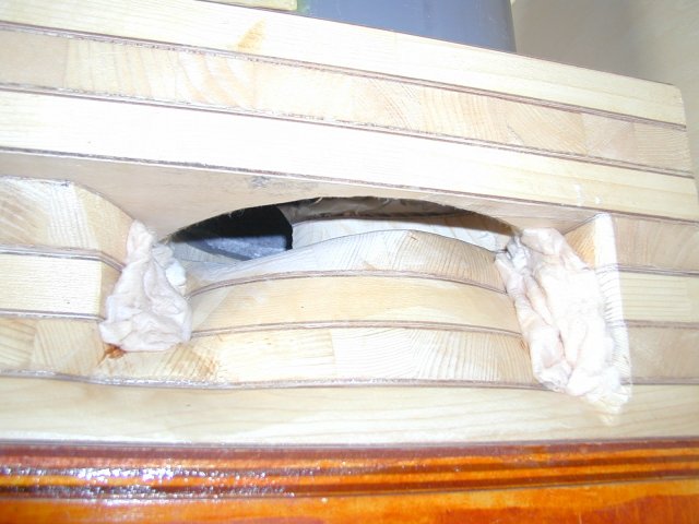 以前よりも、板1枚分を切り込んで更にその下の板も削り込み、管物の篭り音を減らして、中低域のダイレクト感を出せるようになりました。