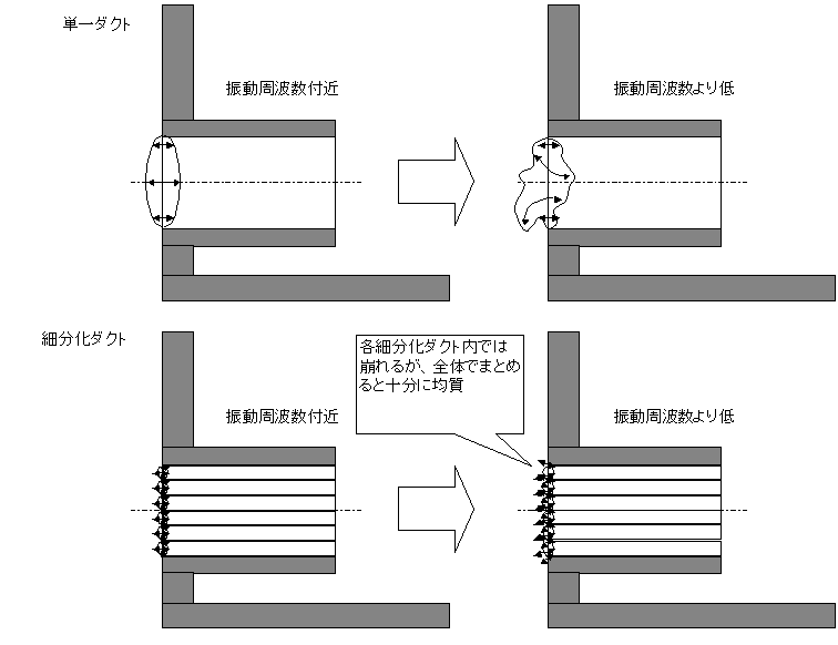 低域が延びるというのは感覚的にもわかる気がします。でも、細分化することで管壁との接触面積が増えて粘性抵抗が増大し、ダイナミックな低音からは外れてゆく方向でしょうね。