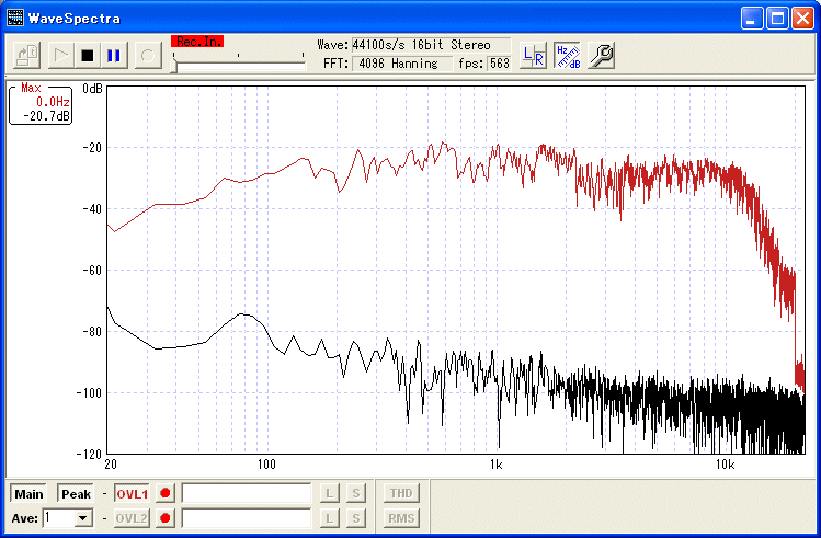 最低域は、ノイズで持ち上がっているが実際は青い線のあたり。
