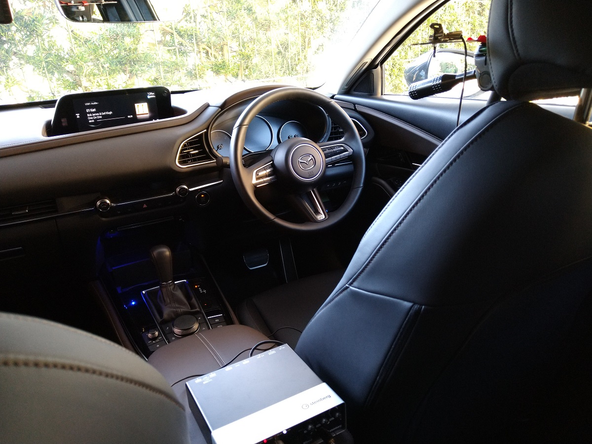 運転席の耳の高さ付近にマイクを2本置いてstereo録音しました。BASS-4,TREBLE+3で調整してます。FRONT側+9でリヤは音を出していませんが、HOMEオーディオとの違いを明確にするために、よりクリアに聴ける設定としてます。 いつも運転中には、FRONT+3~4あたりでしょうか。CX-30の静かな車内でゆったりドライブしながら、お気に入りの音楽を流すのも良いものですね。