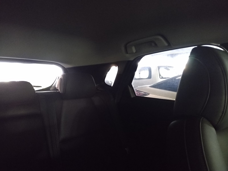 - 反対に後方視界は良くないです。リヤウインドウが寝ていて上下幅が狭いことや、リヤシートバックが思いのほか高いこと、C~Dピラー間に付いている小さなウインドウが、無いと更に困るもののやっぱり小さいこと、などが原因です。 見えない部分は360°モニターを補助的に頼ることになりますね。また、後席ドアの内張り素材はプラスチック主体で、前席とは落差が大きく、MAZDA3とは違ったコストダウンを感じる部分です。