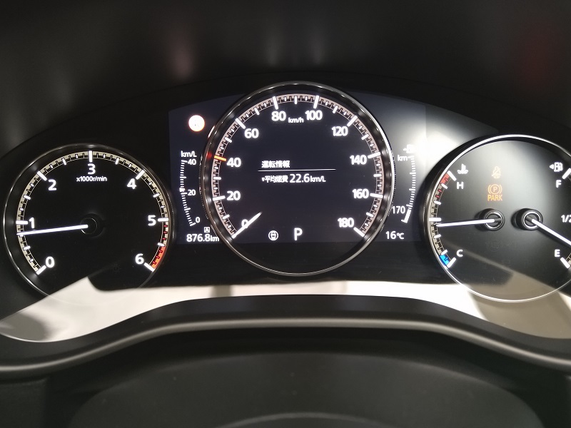 SKYACTIV-D 1.8Lディーザルターボ、車両重量1,460kgもあるのにこの車のエンジンは経済性に優れています。 納車後2週間で、高速5割、郊外路3割、渋滞含む市街地2割程度で、合計1,500kmほど走りましたが、トータル燃費はメーター読みで22km/L程度です。満タン法でもおそらく21km/L程度かと思いますので、軽油の単価を100円/Lとすると、走行距離100Km当たりの燃料費は500円を下回ることになります。 まあ、高速では100km/h程度かそれ以下主体で押さえた運転ですし、郊外路はほとんど一本道で信号が少ない道ですから良好なわけです。また、従来のラフェスタHSのSKYACTIV-Gでは市街地や渋滞では極端に燃費が悪化しましたが、このディーゼルエンジンはそれほど極端に悪化しないように思います。 今のところこの1.8Lディーゼルターボエンジンの経済性はとても優秀、という印象を持ちました。 2.2Lのディーゼルターボは折角の良好な経済性が後退するので要らないです。