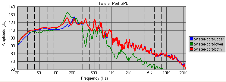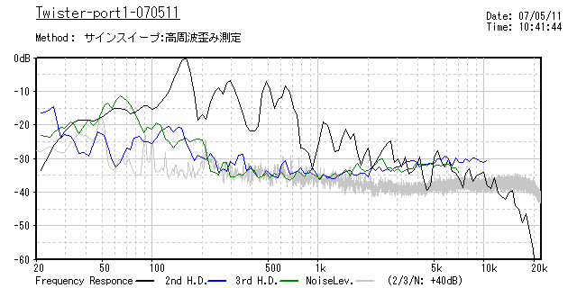 ↓ポート出口。 180Hzの特大ピークは、いつも以上です。。 なんとかしたいけど、なかなか難しいんですよね。 100Hz以下はスパイラルらしく素直なSPLです。3rd-HDが高めなのが、若干のボンつき感につながっているのかも。
