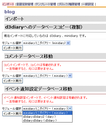 3. minidiaryとd3diaryからのインポート機能を実装(管理画面に)