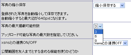 5. 画像添付を最大9枚まで可能にした。 管理画面の一般設定に、最大3/6/9枚のセレクトを追加。