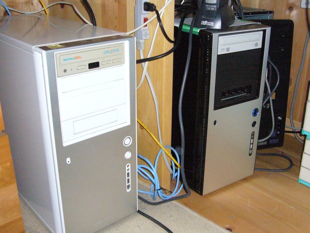 オンボードグラフィック、オンボードGbLANCPU AMD Athron64 X2(DualCore) 4850e SocketAM2 (45W) CPUクーラー (Schythe) Infinity SCINF-1000 ATX電源 電源:(Scythe) 剛力短 PLUG-IN GOUTAN-500-P メモリ (CFD-Elixir) DDR2 (PC2-6400) 計8GB(2GB x2枚組 x2 =計4枚) HDD (ADAPTEC) ASR-2405 (Raid1)