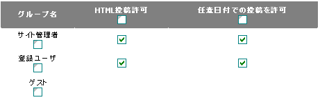 - ユーザーグループ毎に日時指定可能の設定を付けた。選択しないと指定不可。