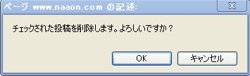 - 確認ダイヤログが出るので、削除OKなら「OK」を押すと削除が実行されます。