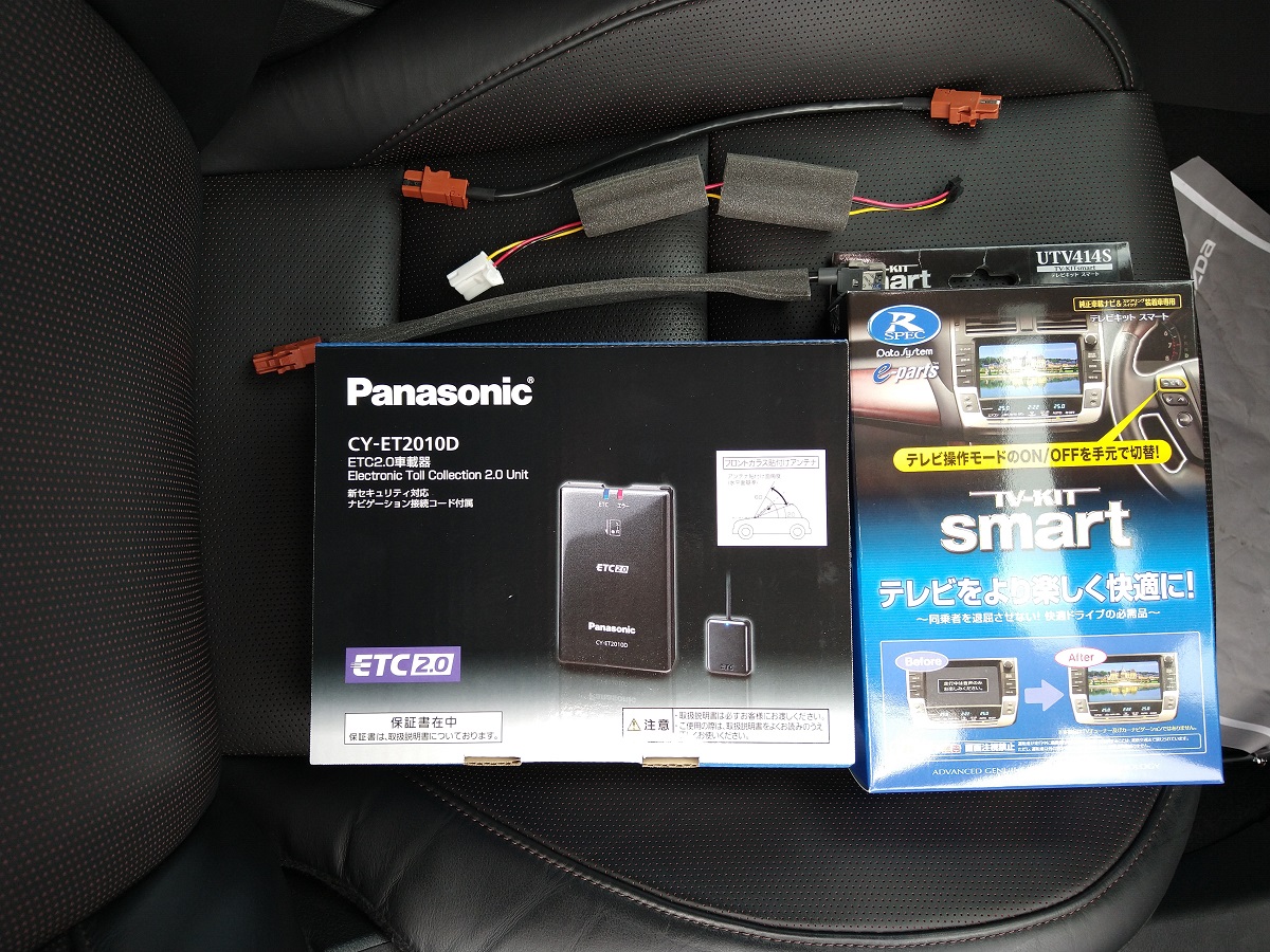 購入した個体は、ETCが装備されていませんでした。 ETC2.0でマツダコネクト連動をしたかったので、価格コムやみんカラの先人の知恵を参考に、ディーラーで受取った直後に、敷地内の空きスペースをお借りして、テレビキット(スマート切替)の取り付けまで敢行しました。(テレビ視聴やマツコネ操作は、運転中はドライバーは操作しないように。このあたりは自己責任ですね。) 新車だったら納車当日にいきなり内装剥がしは憚られたと思いますが、多少の緊張はありましたが1年落ちということで踏ん切りもつきやすかったです。