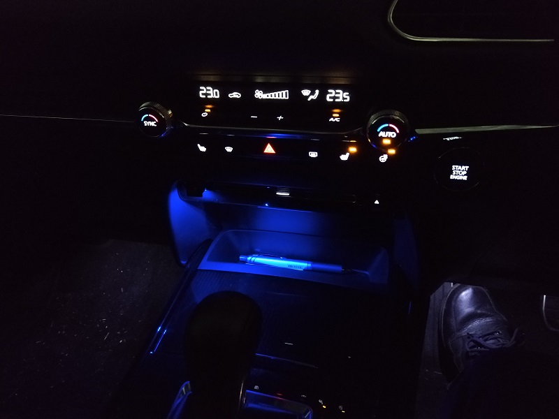 •  弱点としては、センターコンソール前方のカップホルダー付近に照明が無く、WEB情報を頼りに市販の車載用USBコネクタ差し照明を購入し取り付けています。 ACC電源断後6分程度、マツコネ電源と同様に点灯状態を継続し、その後消灯します。 オプションとして装備されていた、PREMIUM SELECTIONの3点セット、フットランプ、スポーツペダルセット、イルミネーションスカッフプレート、中々良いですが、まあペダルセットは市販品のほうがずっとコスパが良いのでオマケみたいなものと認識してます。