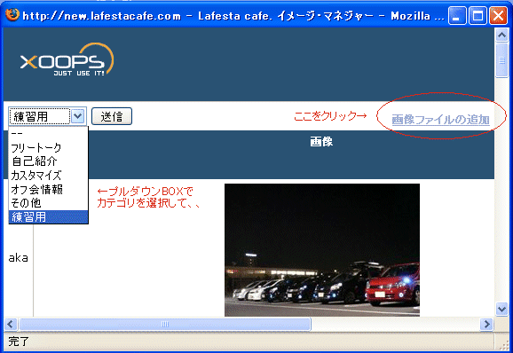 [17] | プルダウンBOXでカテゴリを選択して、「画像ファイルを追加する」を押します。 |