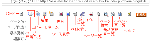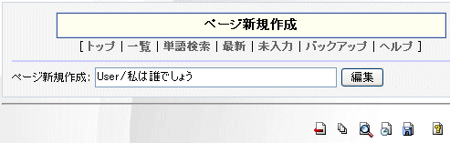 puki-icon.gifページ下部のアイコンです。ここでほぼ全ての操作が可能です。(アイコンにマウスを合わせると、アイコン名が表示されます。) ここでは左から2番目の「新規」アイコンをクリックします。